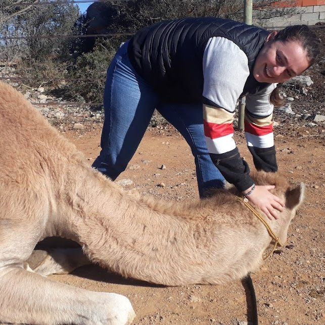 Toujours le sourire pour vous présenter ses animaux préférés Les dromadaires n'ont plus de secret pour elle !